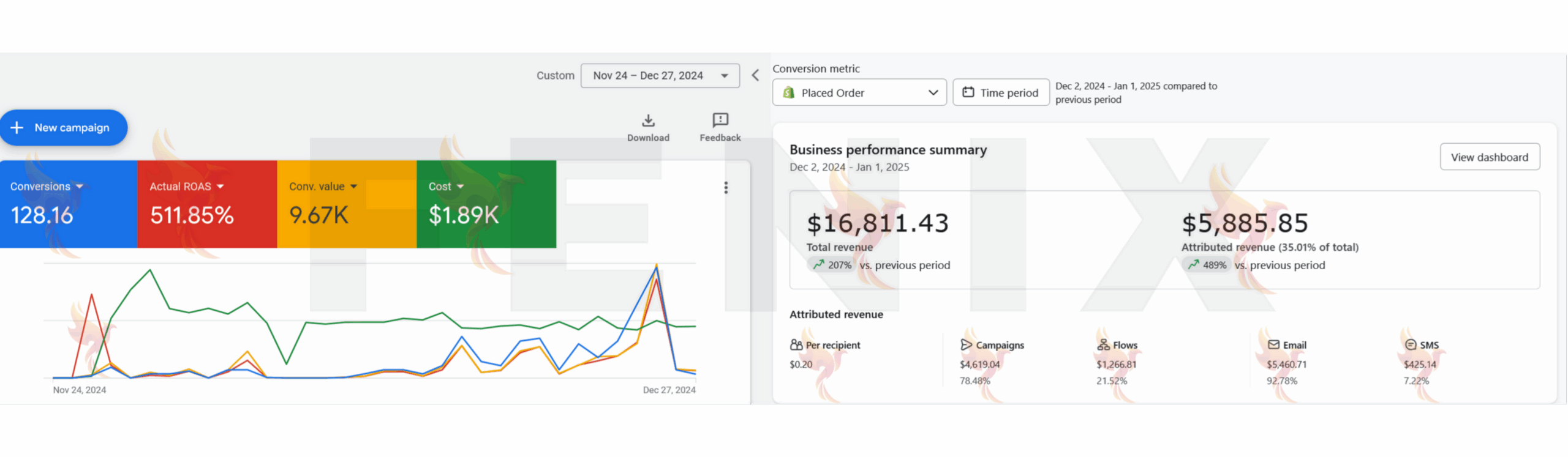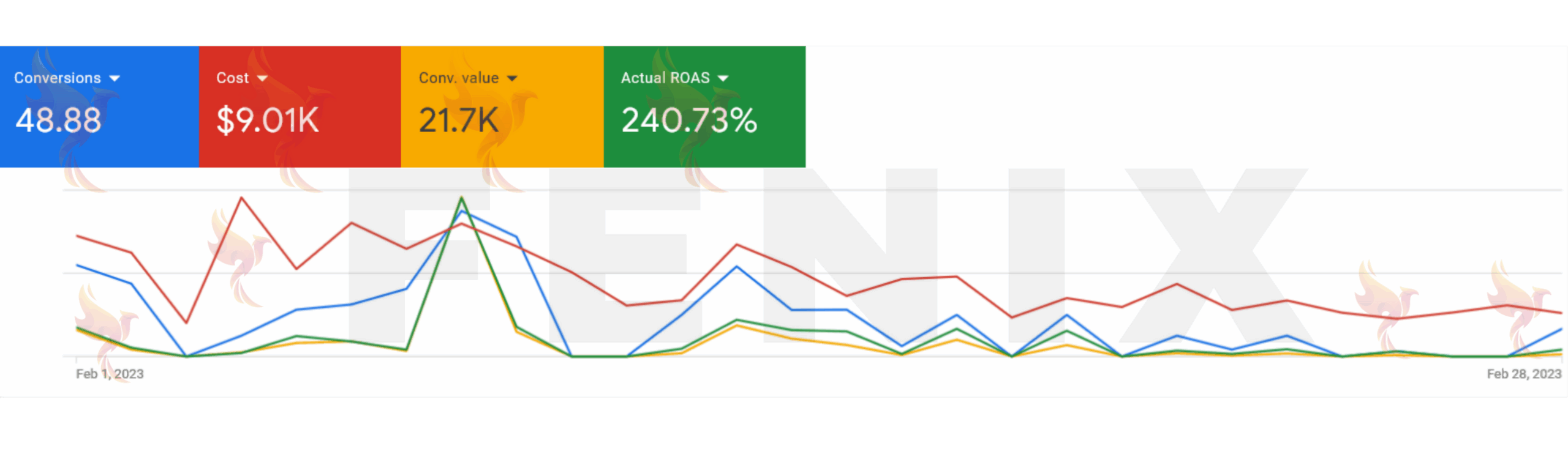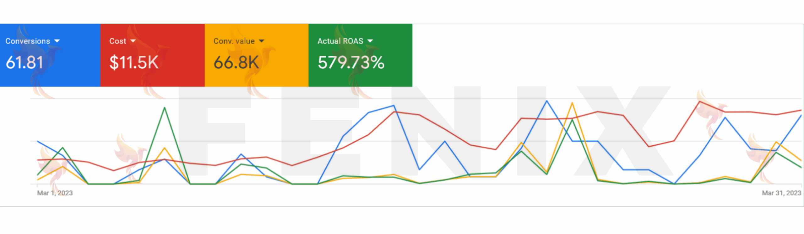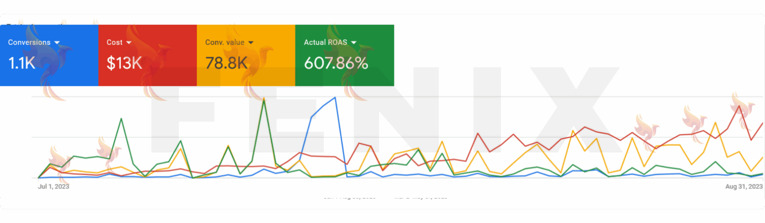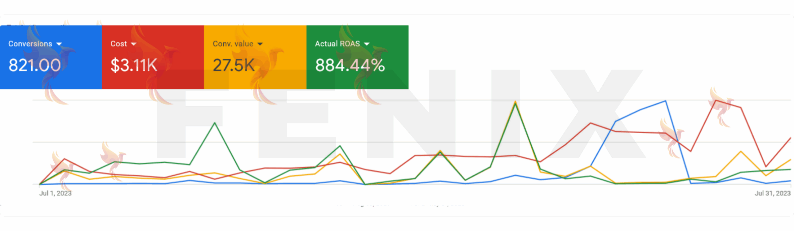Google Ads ROAS: 833% average, showcasing profitability.